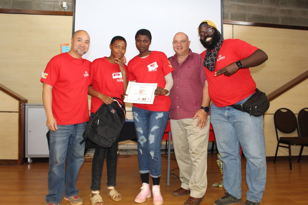 I am happy to report that our students placed third in cartoon design, and won the video game design competition. Their video game featured a girl catching falling good advice and avoiding falling bad advice. Catching good advice granted the player one point while catching bad advice subtracted a point from the player’s score. For their efforts, they won a tablet, backpacks, and a laptop. The above picture shows Deacon (the man behind G3 and Scratch Day), my Scratch-coding students (from our local high school), Mike (the Deputy Chief of Mission to eSwatini), and me.