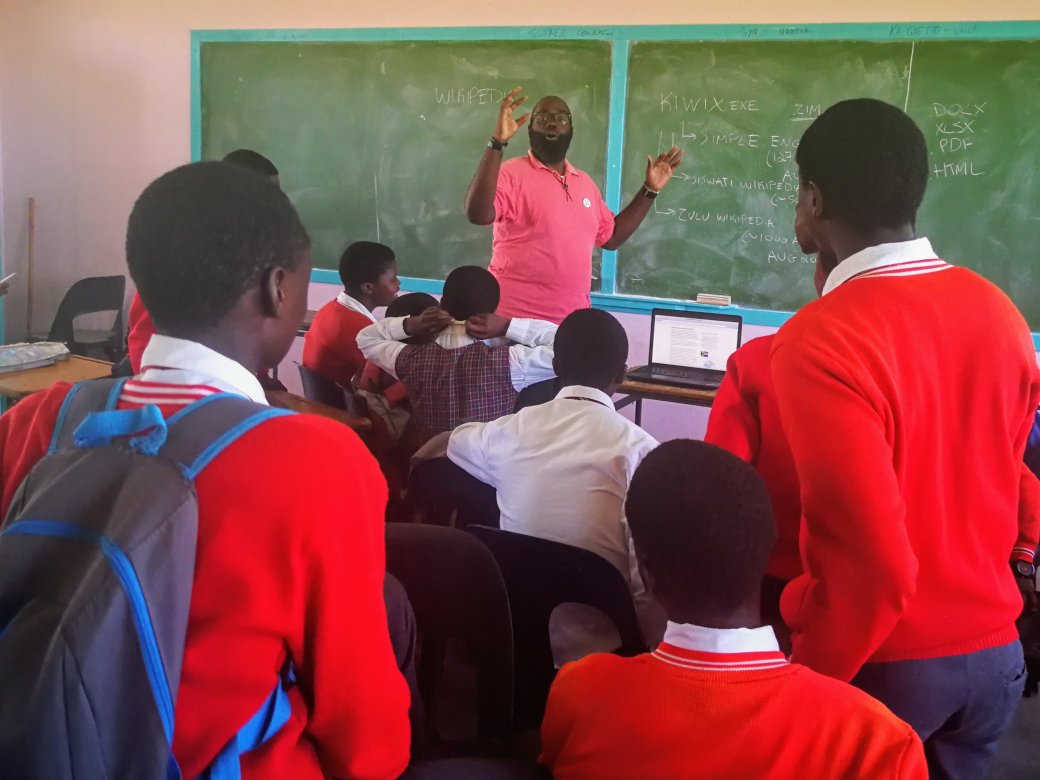 I’m beyond excited to see this project taking shape. In my vision for Swaziland, all schools would be using Wikipedia offline if they don’t have internet access. I’m also excited about chipping away at the digital divide. The picture above (taken by one of my students) is of me teaching my Form 4 students about the various wikis.