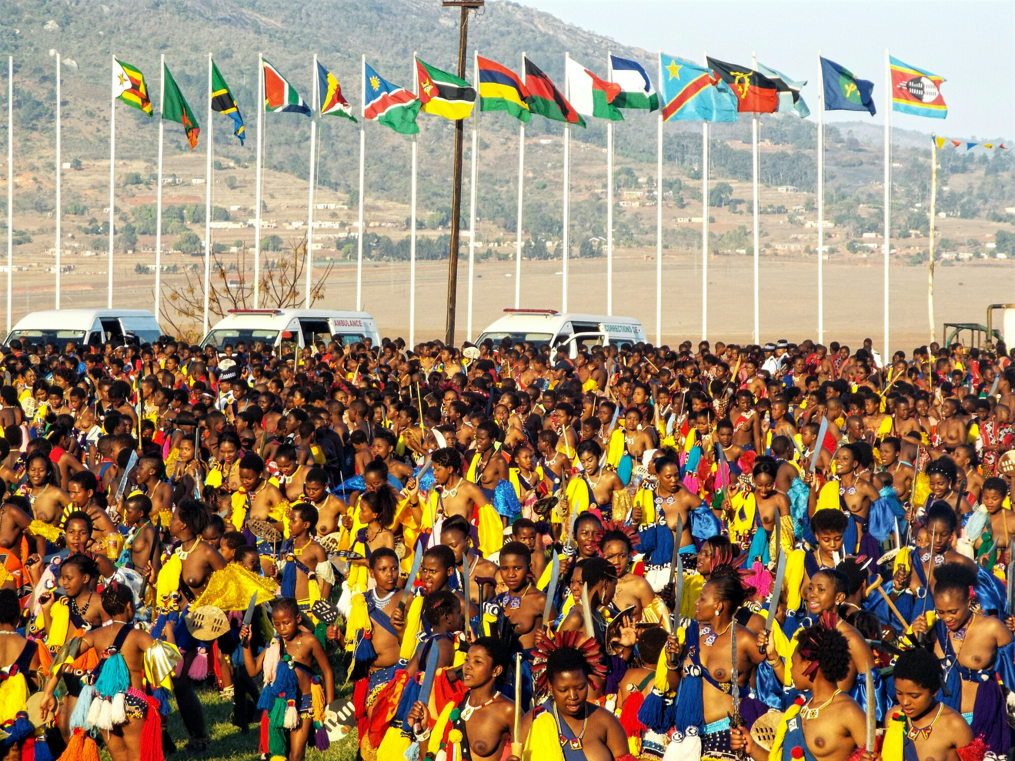 One of the biggest traditions in the world, Umhlanga, celebrates the purity and chastity of young maidens. Also, called the Reed Dance, about 98000 young ladies and girls.